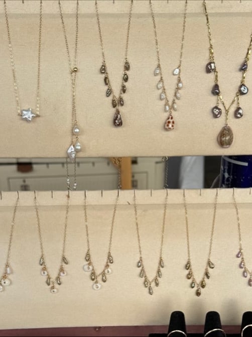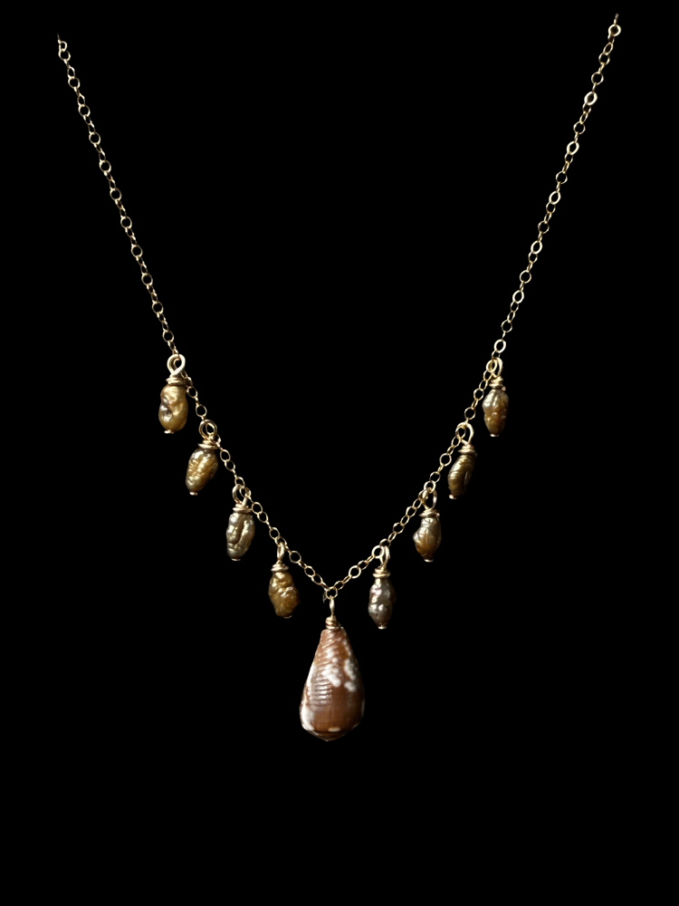 Made with 14k gold filled chain, high grade freshwater pearls and shells found by hand on the Hawaiian islands.