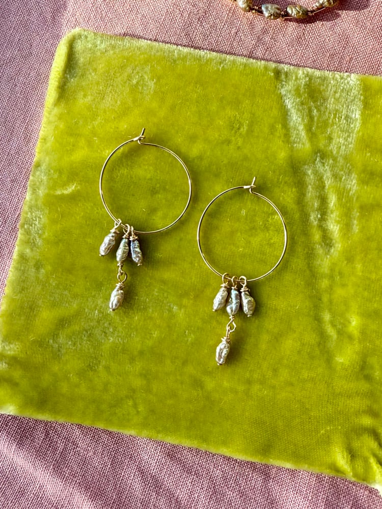 Made with 14k gold filled 15mm hoops and freshwater pearls.