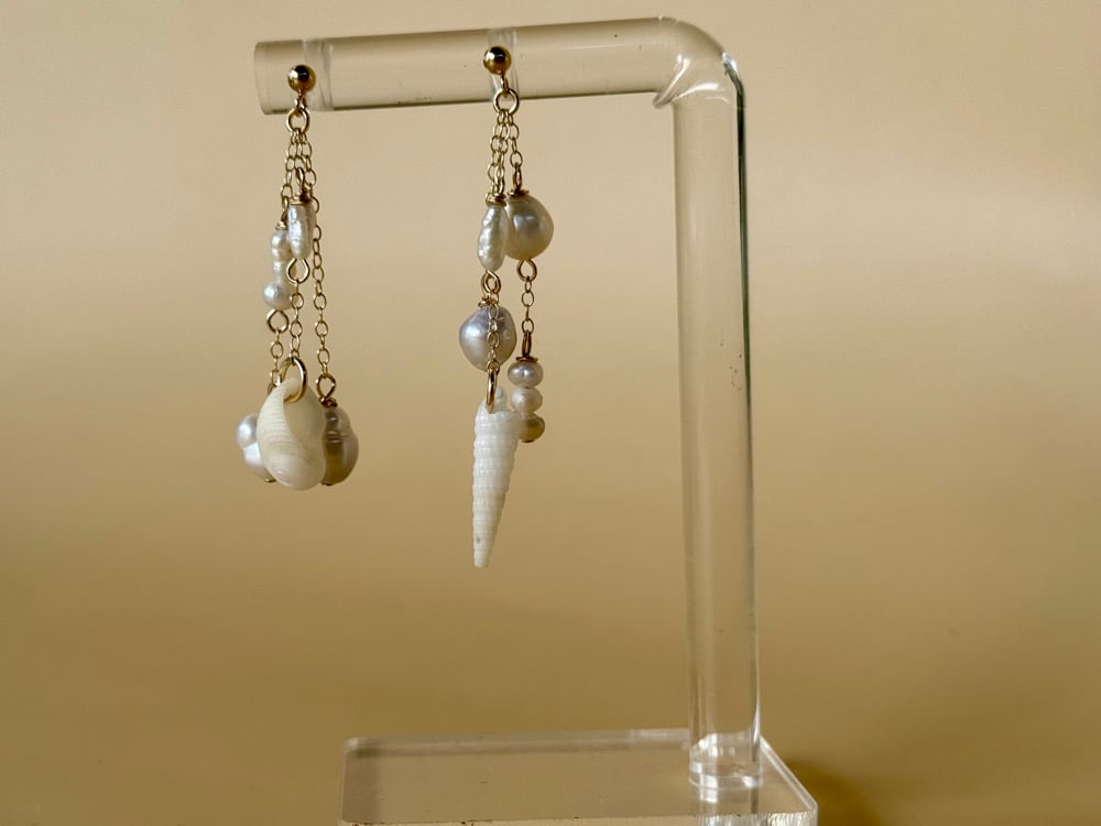 Made with 14k gold filled posts and chain, high grade freshwater pearls and shells found by hand on the Hawaiian islands.