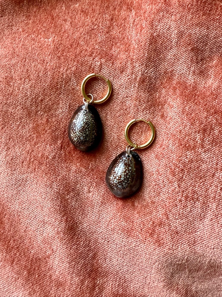 Made with 14k gold filled hoops and cowry shells found by hand on the island of Kauai. Hoops are 14mm.