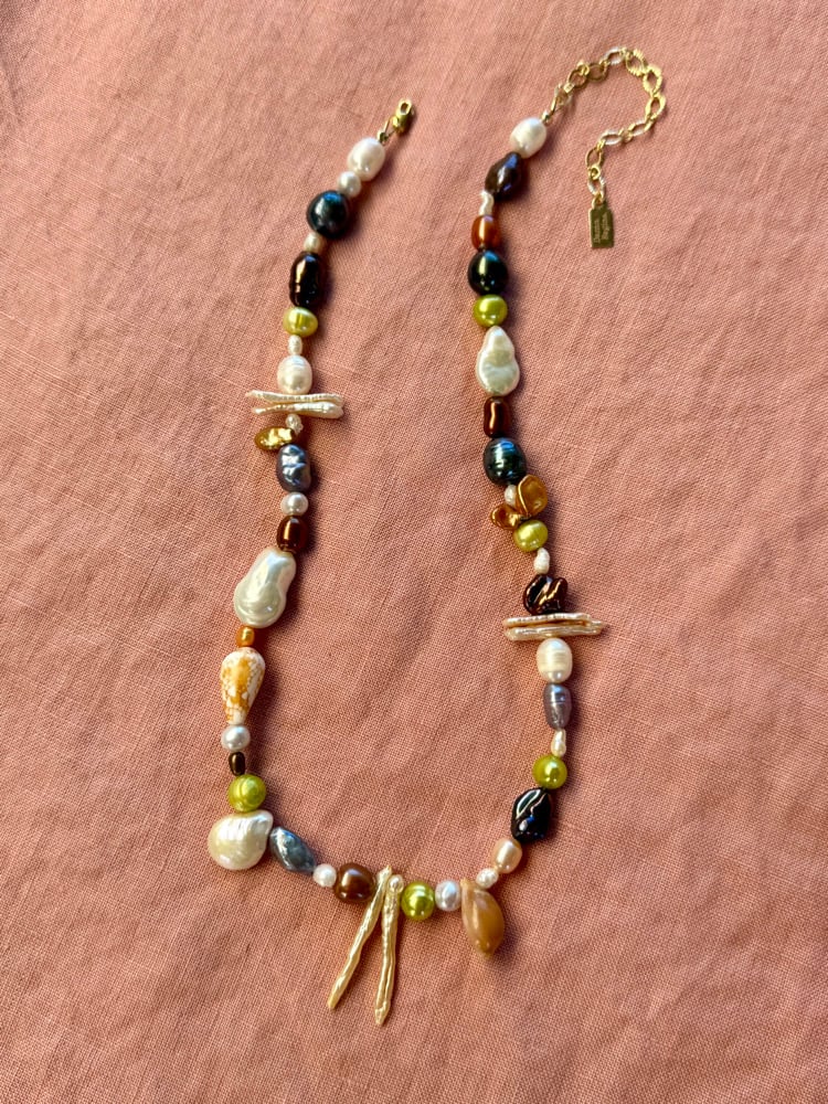 Made with high grade freshwater pearls, 14k gold filled findings and shells found by hand on the Hawaiian islands.