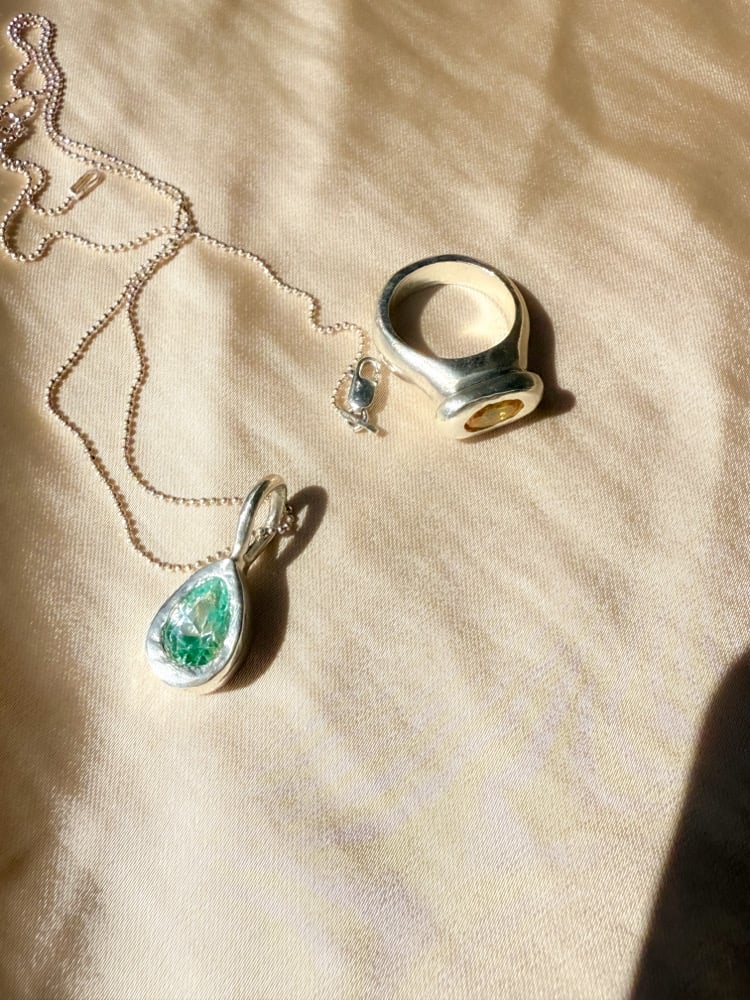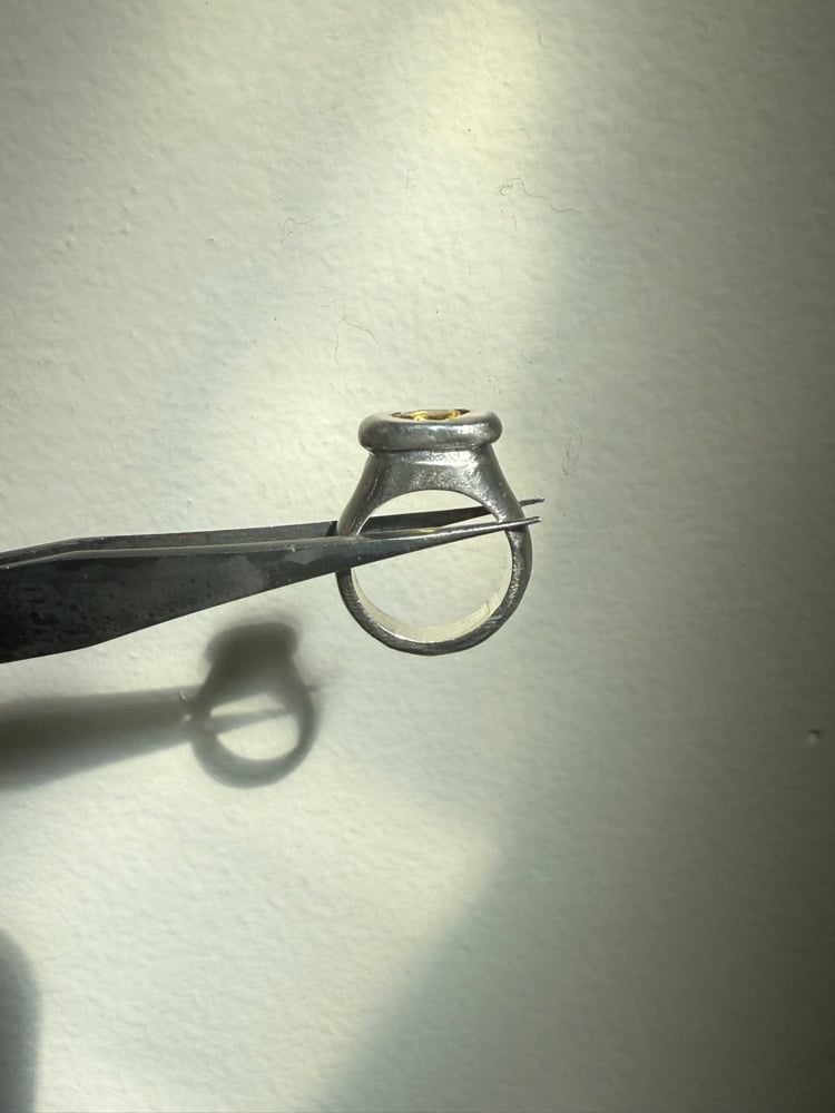 Hand carved in wax, casted in sterling silver. polish and set by hand. Lab oval yellow sapphire.
